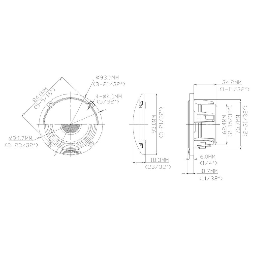 Alpine DP2-35M - DP2-Series 3.5" Component Mid-Range Car Speakers