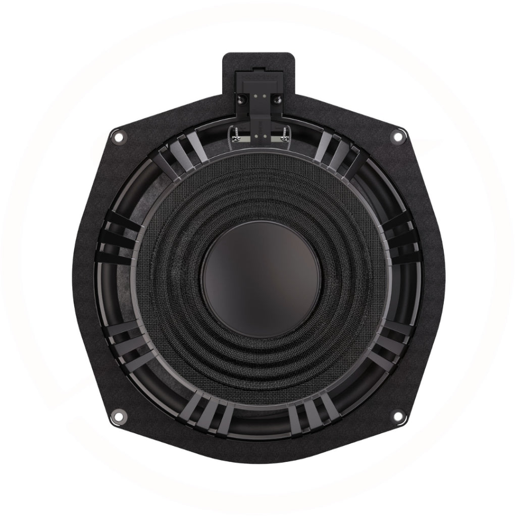 The most powerful BMW under-seat subwoofer in its class: never before has there been more bass - the ultimate sound upgrade for your BMW! Experience rock-hard punches, extremely deep bass runs with unprecedented dynamics and power! The finest materials and speaker know-how from over 40 years meet production quality Made in Germany: a specially newly developed carbon fiber fleece sandwich cone in combination with the large, heavy-duty 63 mm voice coil enables sensational bass performance! The 200 mm (8") Plug & Play BMW under-seat bass speaker has also been equipped with a torsion-resistant die-cast aluminum basket and naturally has the original vehicle-specific connection terminal and the necessary EPDM sealing flanges. The extremely powerful neodymium magnet sits optimally cooled on the torsion-resistant, powder-coated metal grille and has a polished base plate with a large core hole for the best possible cooling. Development and production Made in Germany.