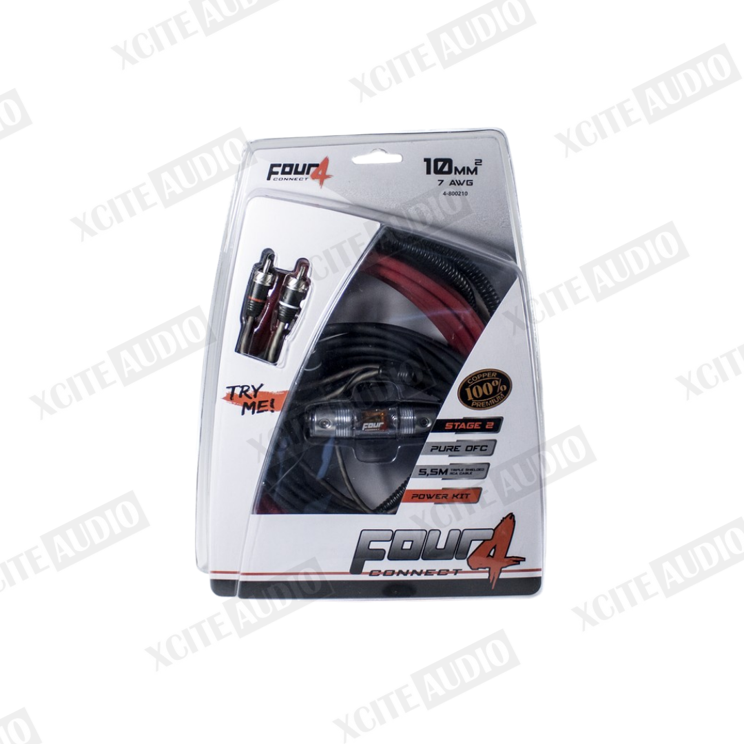 FOUR Connect 4‑800210 STAGE2 10 mm² OFC Amplifier Powerkit | 100% Copper | Waterproof Fuse Holder | 40A ANL Fuse