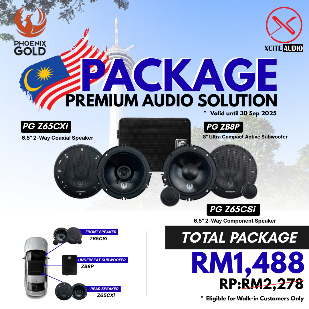 Merdeka Phoenix Gold Component + Coaxial + Active Subwoofer Bundle Package