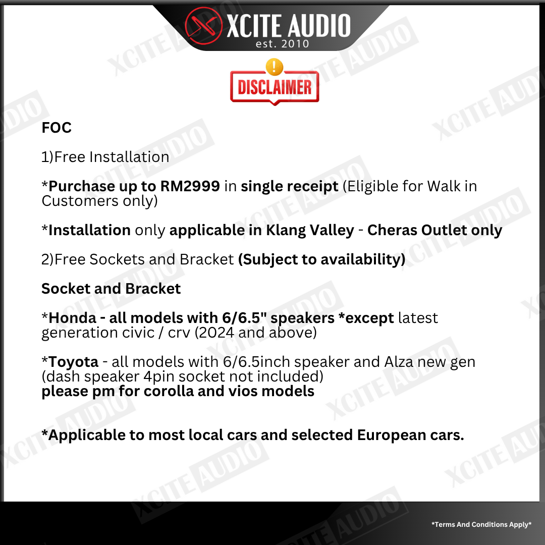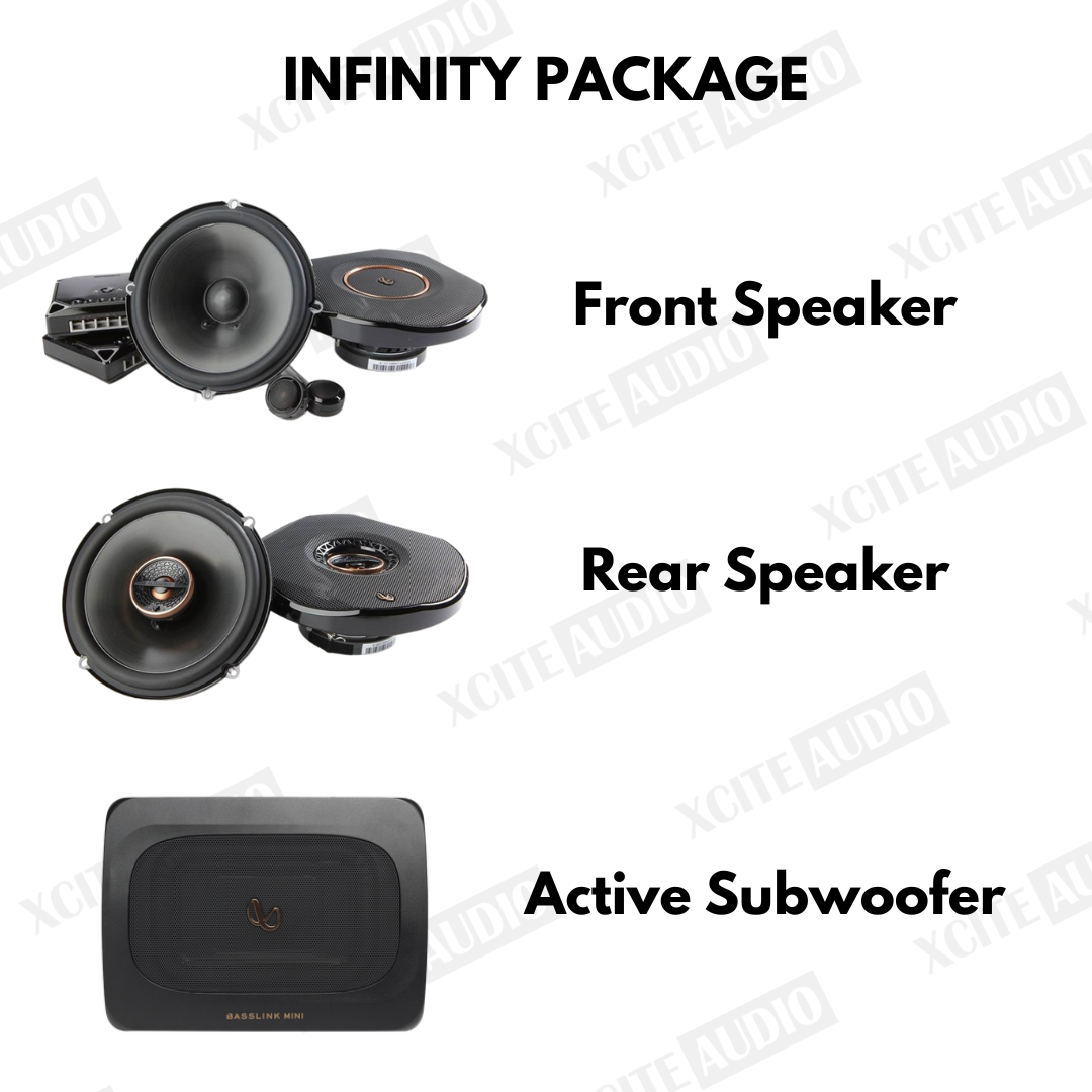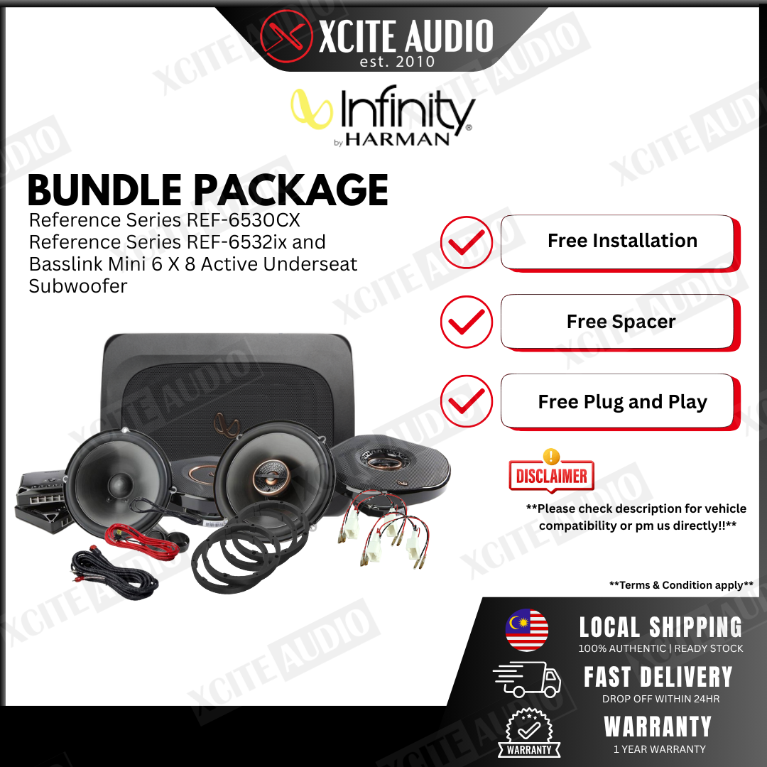 Elevate your car listening experience with the perfect upgrade by getting a bundle set consisting a 2-way component speaker system for the front, a pair of 2-way coaxial speakers and active subwoofer. Products catered are suitable for stock car applications and future power upgrades down the road to make sure you have a future-proof upgrade in your first step of car audio.