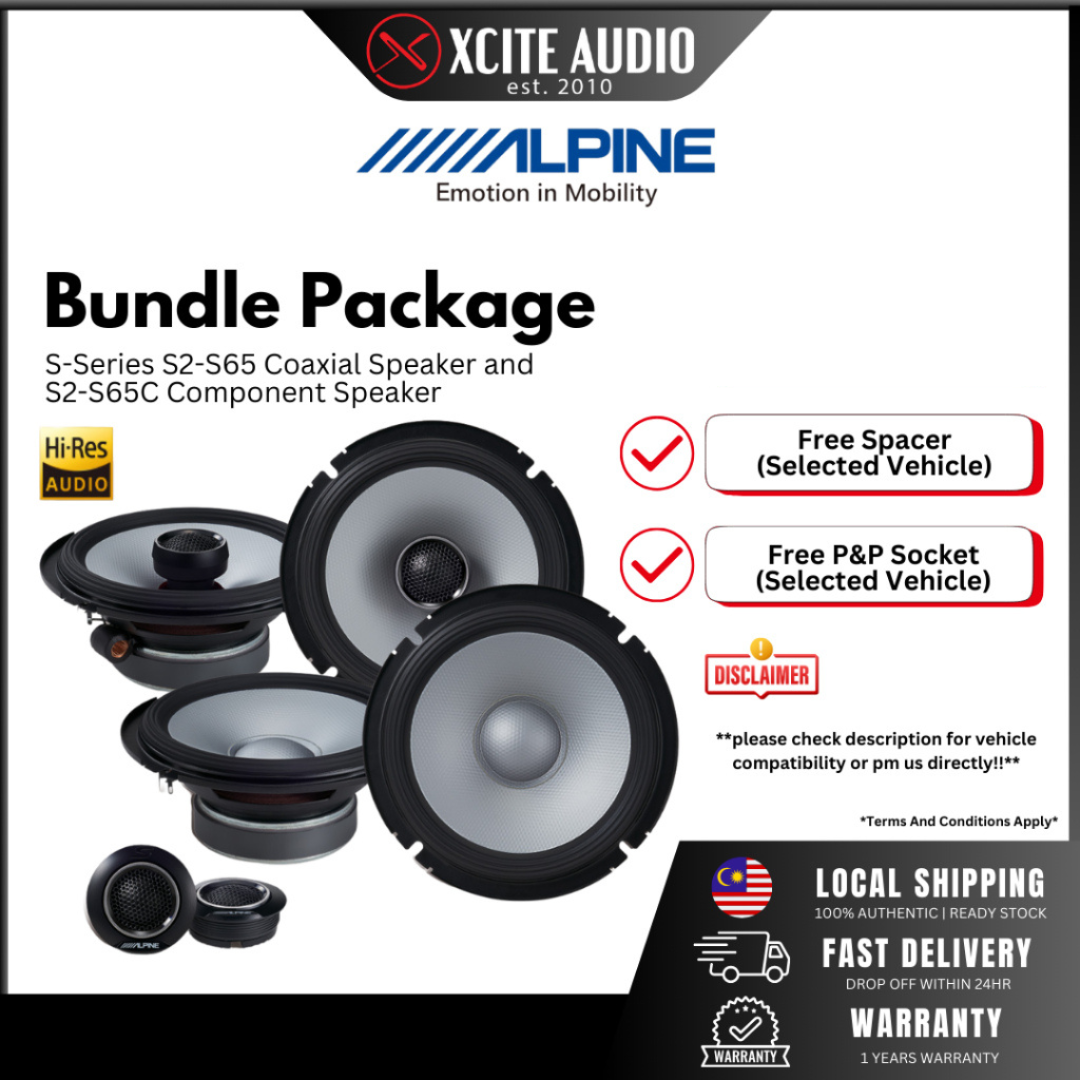 Elevate your car listening experience with the perfect upgrade by getting a bundle set consisting a 2-way component speaker system for the front and a pair of 2-way coaxial speakers. Products catered are suitable for stock car applications and future power upgrades down the road to make sure you have a future-proof upgrade in your first step of car audio.