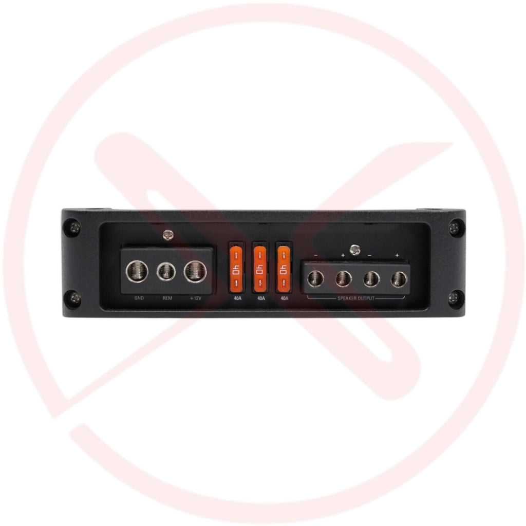 4-gauge power and ground leads recommended — wiring and hardware not included with amplifier